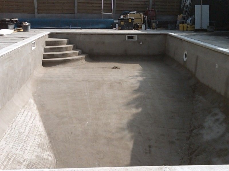 11. Покрыть дно и верхний уступ бассейна ремонтным раствором Акваизол РР для защиты гидроизоляционного покрытия и, при необходимости, дополнительного выравнивания поверхности перед окончательной отделкой. Оптимальная толщина покрытия 10-15 мм.