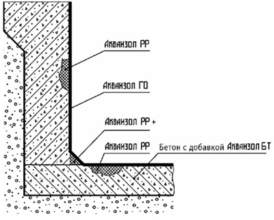 6. Выполнить обмазку внутренней поверхности вертикальных стен резервуара гидроизоляцией обмазочной Акваизол ГО в два слоя методом «свежим по свежему».