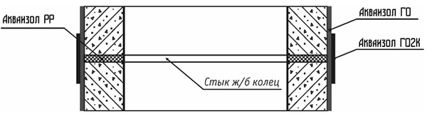6. Выполнить дополнительную обработку швов. По швам стыков нанести гидроизоляцию обмазочную Акваизол ГО2к в два слоя.