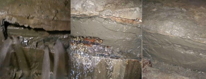 Активные протечки могут быть действующими (в этом случае они видны по сочению воды или подмоканию поверхности) и не действующие, но способные проявиться в другое время (такие протечки обнаруживают себя по разрушению наружного слоя отделочных материалов и следам соли на поверхности бетона).
