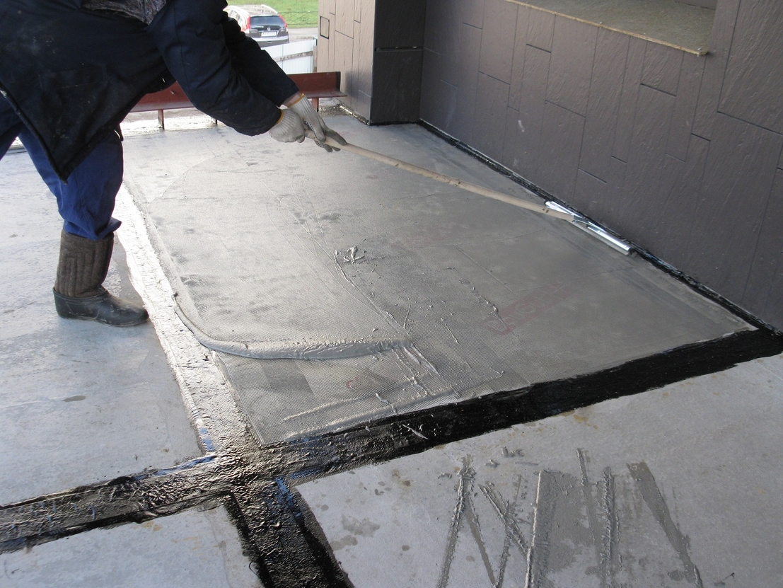 1. Очистить поверхность плиты пола от пыли и грязи, промыть чистой водой под давлением и удалить лишнюю воду. Поверхность должна быть сырой, но без луж.